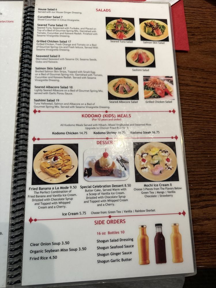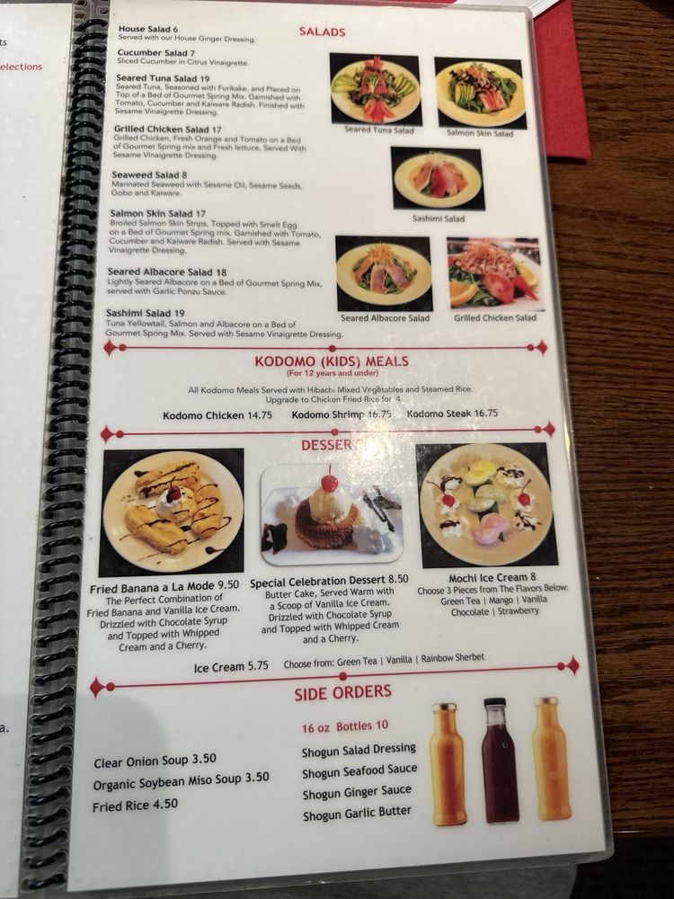 Shogun Kobe Restaurant offers a diverse menu with options for everyone, including sushi, steaks, and Japanese cuisine. They provide various utilities such as reservations, delivery, and takeout, along with vegan, vegetarian, and Keto options. The location in San Diego, CA, offers street and private lot parking. Customers praise the attentive staff and interactive teppan chef. The half roll trio and house salad with ginger dressing are popular choices. The restaurant is described as bright, spacious, and clean, providing a casual dining experience suitable for groups and kids. The happy hour specials offer great value for delicious food, and the staff is friendly. Overall, Shogun Kobe Restaurant is a fantastic choice for a satisfying meal with a mix of traditional and modern Japanese flavors.